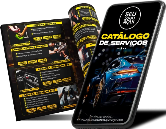 Sua estética automotiva merece um catálogo de serviços à altura: moderno, editável e atrativo.